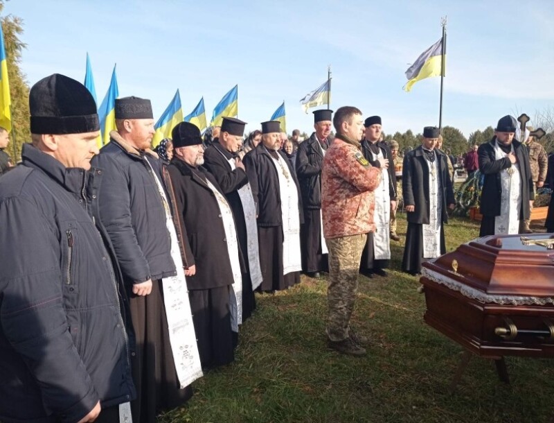 На церемонію прощання з траурними квітами та державною символікою прийшли представники громади, військового комісаріату, священнослужителі, друзі, знайомі загиблого, військовослужбовці та просто небайдужі жителі.