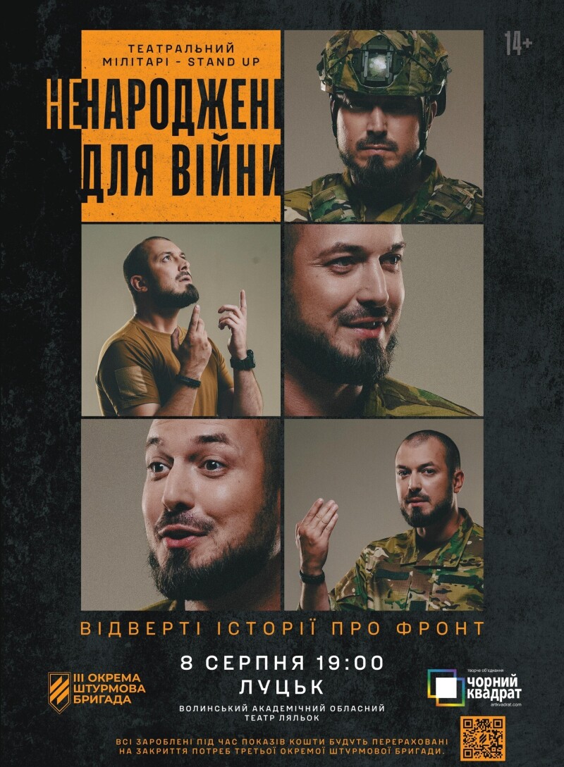 У четвер, 8 серпня, о 19.00 у Волинському академічному обласному театрі ляльок відбудеться документальна вистава «Ненароджені для війни» від Третьої окремої штурмової бригади.