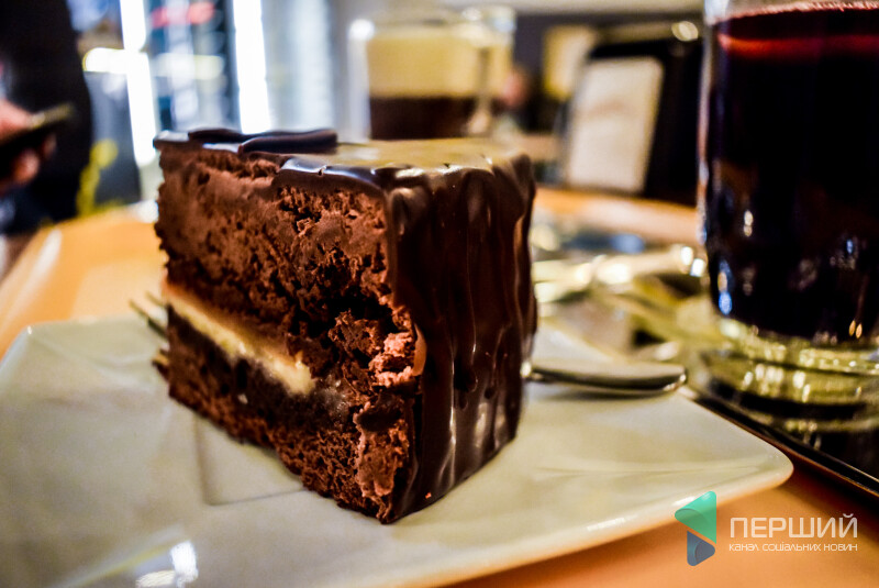 Торт «Захер». Шоколадне диво, смачне настільки, що ми вирішили: за цей десерт прощаємо закладу все ?. Шоколадні коржі із густим кремом та особливою родзинкою всередині – пелюстками мигдалю… Для когось ця насолода може виявитись надто солодкою, але на наш смак – це було ЯКРАЗ ТЕ висококалорійне щастя, за яке потім не шкода потіти на біговій доріжці.