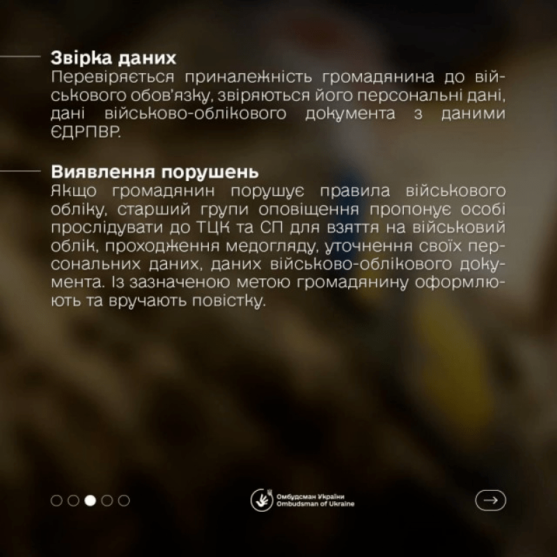 Під час вручення повістки перевіряється приналежність громадянина до військового обов’язку, звіряються його персональні дані та дані військово-облікового документа з даними ЄДРПОУ.