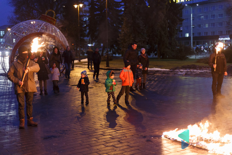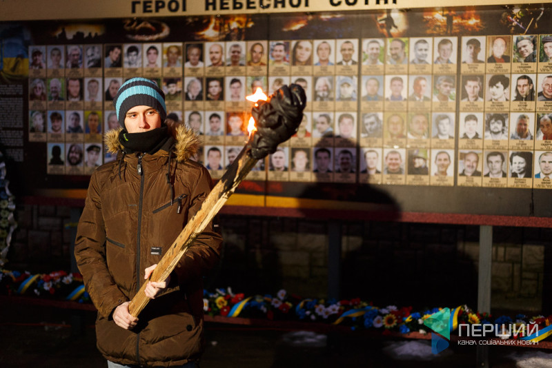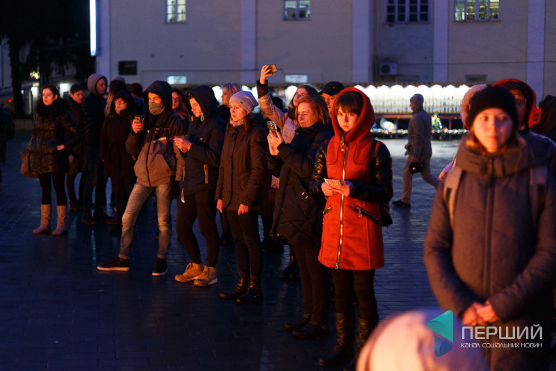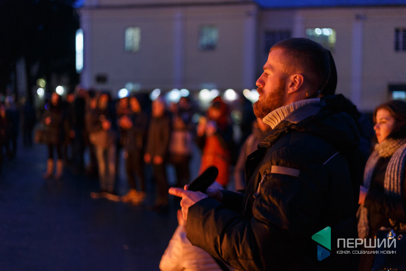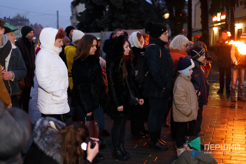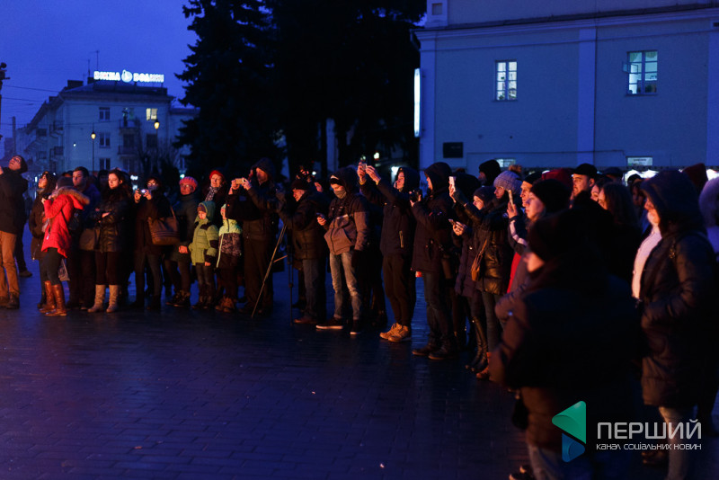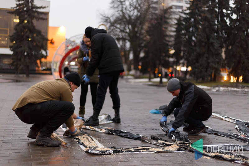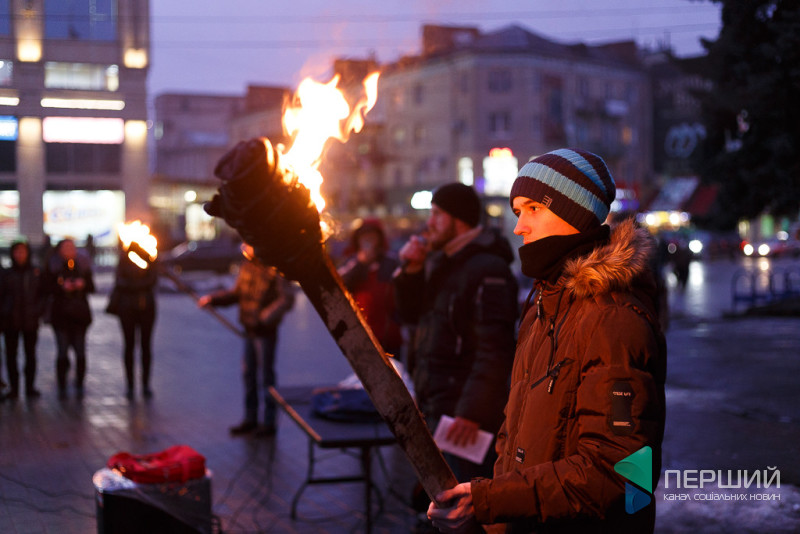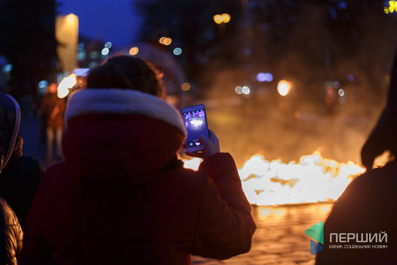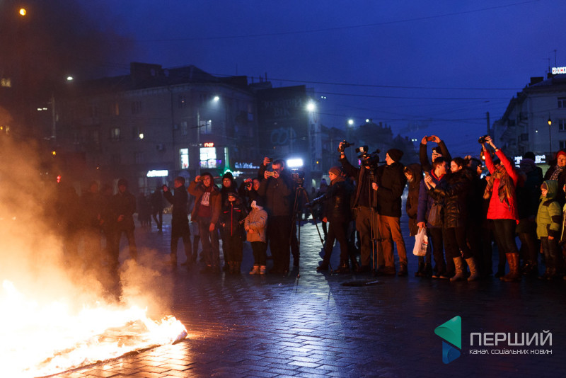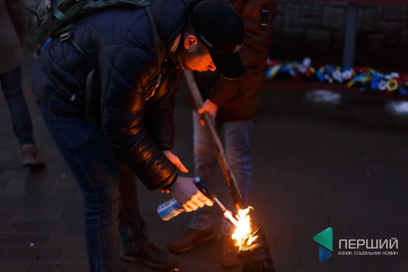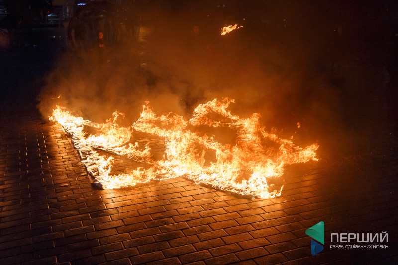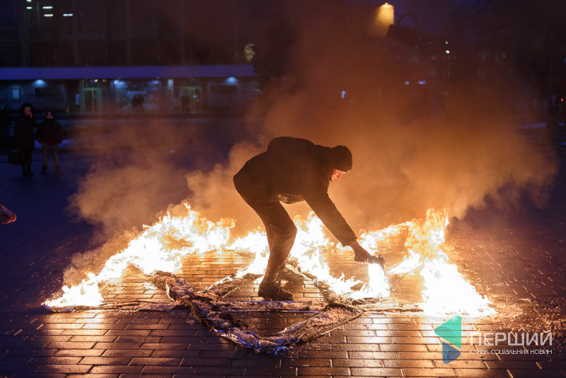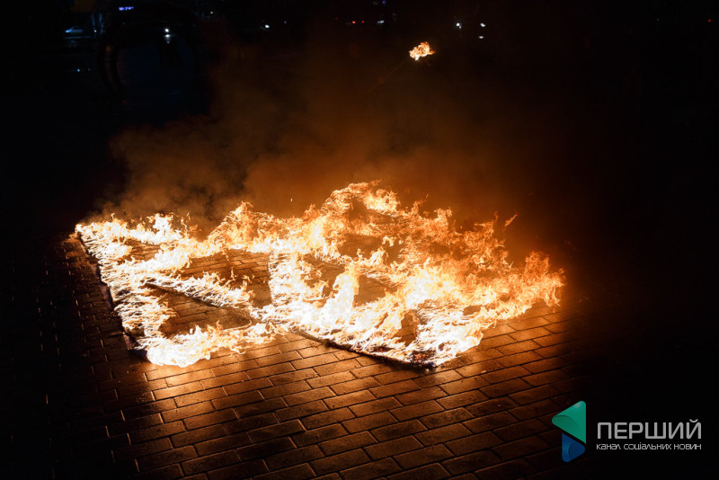 Після цього на Театральному майдані виклали палаючий тризуб.