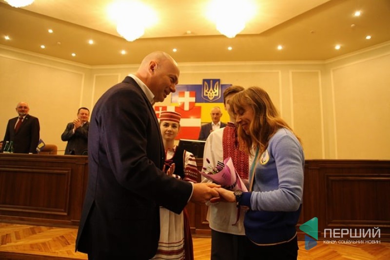 Перед початком сесії обласної ради Ігор Палиця вручив подяки двом у часницям паралімпійських ігор біатлоністок Юлію Батенкову-Баума та Богдану Конащук.