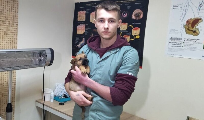 Зараз також у клініці виходжує трьох двомісячних цуциків, яких Тарас Савченко теж знайшов на вулиці.