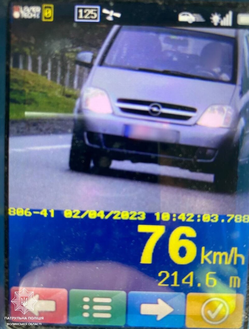 Сталося це вчора, 2 квітня, на автодорозі Н-22 Устилуг — Луцьк — Рівне. Поблизу села Затурці охоронці порядку контролювали швидкісний режим за допомогою приладу TruCAM. Близько 11-ї години вони зафіксували автомобіль Opel, який рухався зі швидкістю 76 км/год.