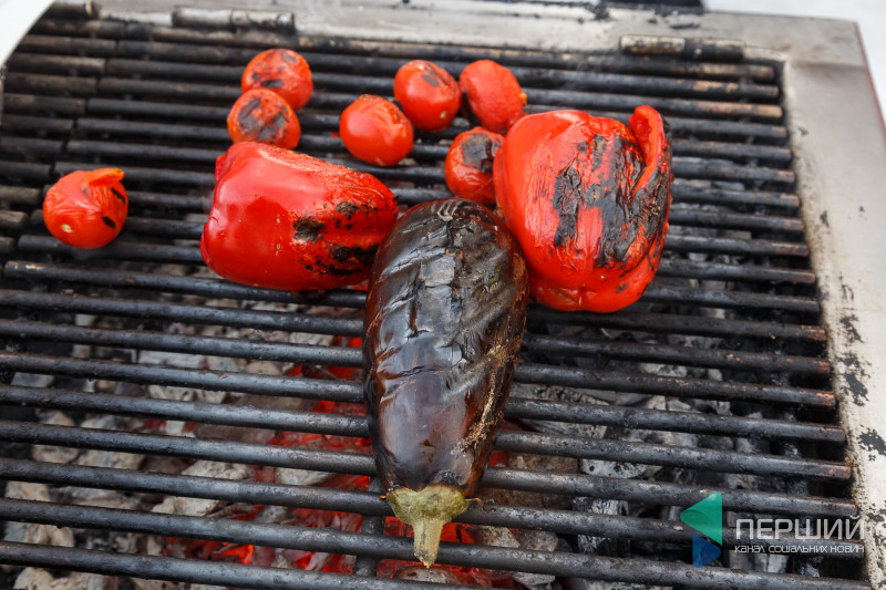 Овочі помити та, не ріжучи їх, підсмажити на грилі.