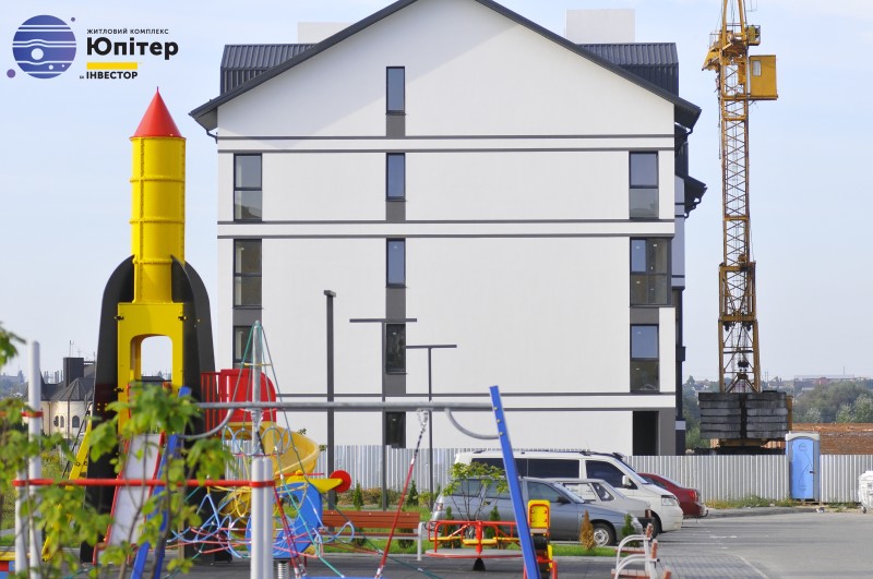 У дворі «Юпітера»  вже росте зелена травичка і туї, облаштований дитячий майданчик. До речі, територія комплексу огороджена, потрапити у двір можна лише через один вхід, який контролюється охоронцем.