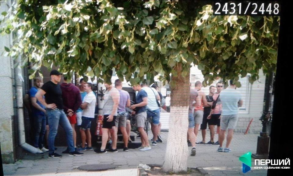Тож перед початком судового засідання біля установи людно. Тут зібрались журналісти, учасники спілки афганців, адвокати, громадські активісти та молодики спортивної статури. Їх, до слова, близько трьох десятків і частина з них веде себе напівагресивно.