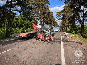 Вогнеборці 2-ї ДПРЧ м. Луцька вжили заходів для недопущення вибуху і горіння автівки внаслідок деформування відсіку двигуна (на молоковозі встановлене газобалонне обладнання, відбувся витік газу).