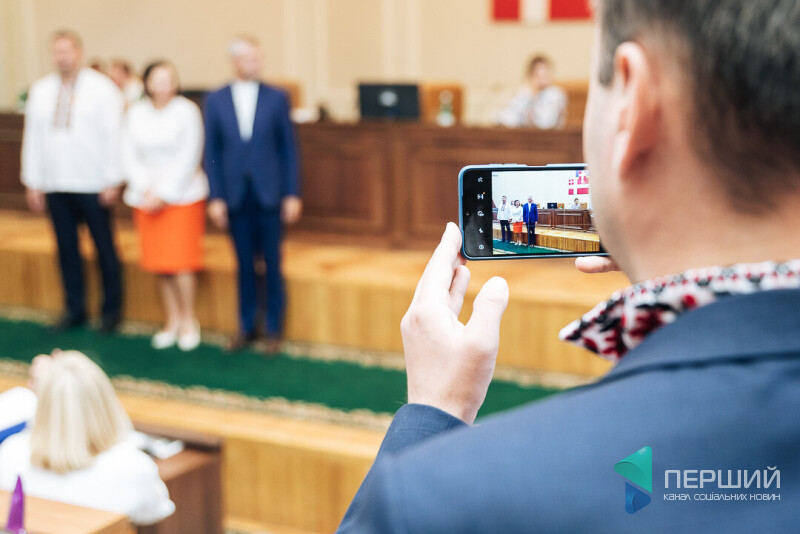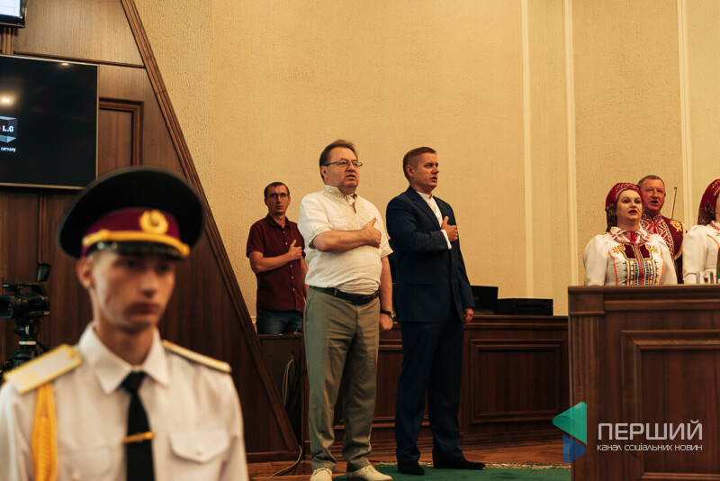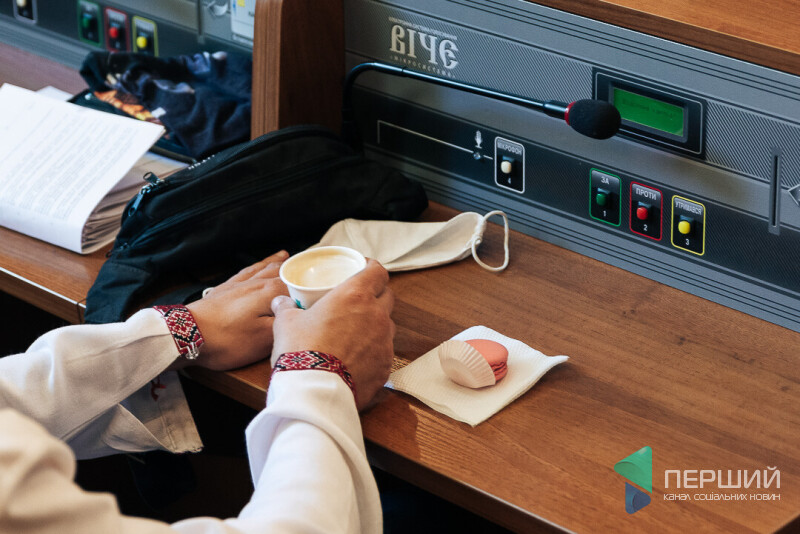Ну от: духовий оркестр просто в тому місці, де рік тому обирали голову ради і його заступників. Бутери, боржомі, яблучно-виноградний сік і навіть кава. Хтось одразу звертає за порядком денним до столу реєстрації, хтось – до кави, хтось – до колег тиснути руку і дарувати обійми. Ще хтось тим часом завбачливо прихоплює з собою до зали пляшечку боржомі, щоб зайвий раз не гамувати сесійну спрагу за свої гроші, а ліпше – за бюджетні.
