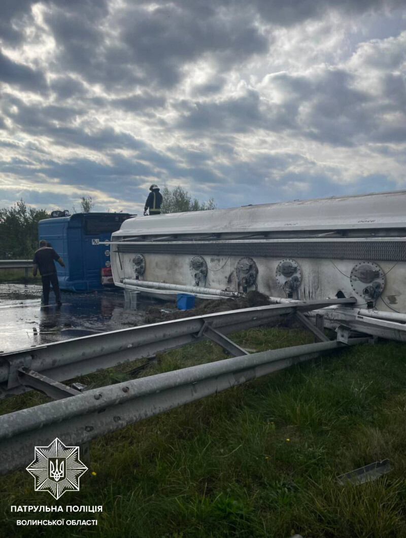Патрульні склали адмінматеріали на водія бензовоза, який скоїв автопригоду на трасі Київ — Ковель — Ягодин.