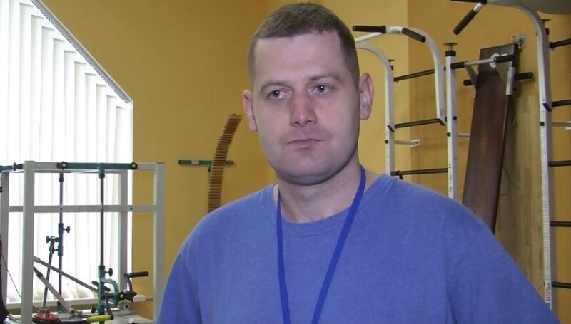 За словами фізичного терапевта Андрія Гузова, цей військовослужбовець відновлюється у залі фізичної реабілітації високої інтенсивності після інсульту. У чоловіка було два випадки інсульту в різні проміжки часу.