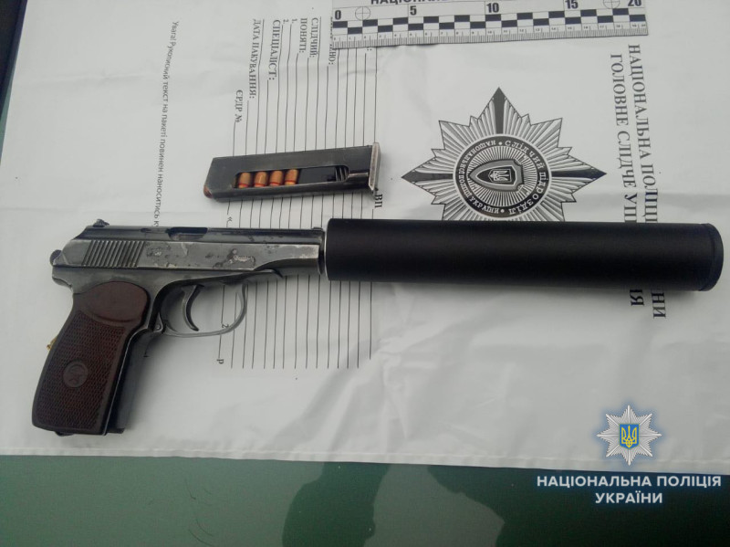 Під час обшуку в одного із виконавців, 49-річного жителя столиці, у підсобному приміщенні його дачного будинку у Житомирській області поліцейські вилучили саморобний вибуховий предмет, запал до гранати, пістолет та набої. В іншого, в помешканні у Києві, виявили 11 гранат, 12 запалів до них та набої. Правоохоронці встановлюють походження зброї та боєприпасів.