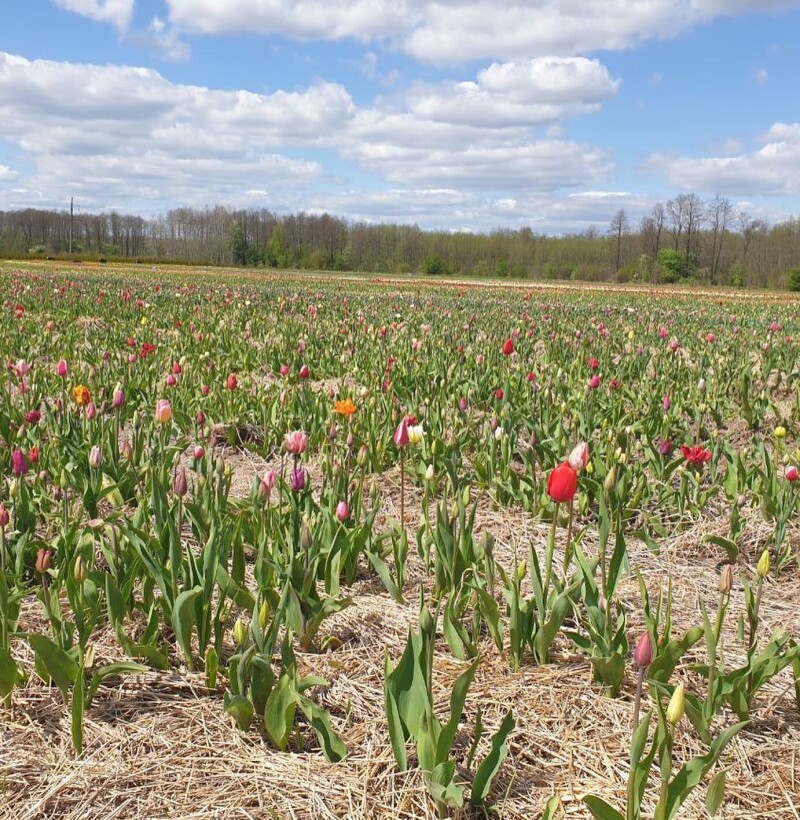 Організаторр також розповіли, що через повінь поле з тюльпанами трішки підтопило, частинка квітів, нажаль, не виросла, однак більша частина вціліла і от-от розквітне!