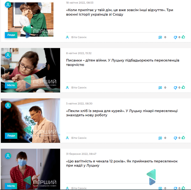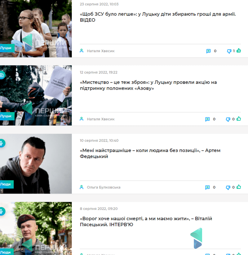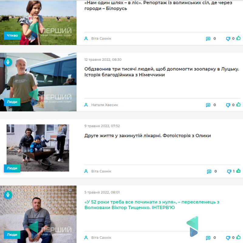 Понад два десятки матеріалів «Перший» створив за сприяння ГО «Львівський медіафорум» у межах проєкту «ЛМФ Підтримка мережі журналістів». Показували та розповідали про те, чим і як живе Волинь у травні-серпні 2022-го.