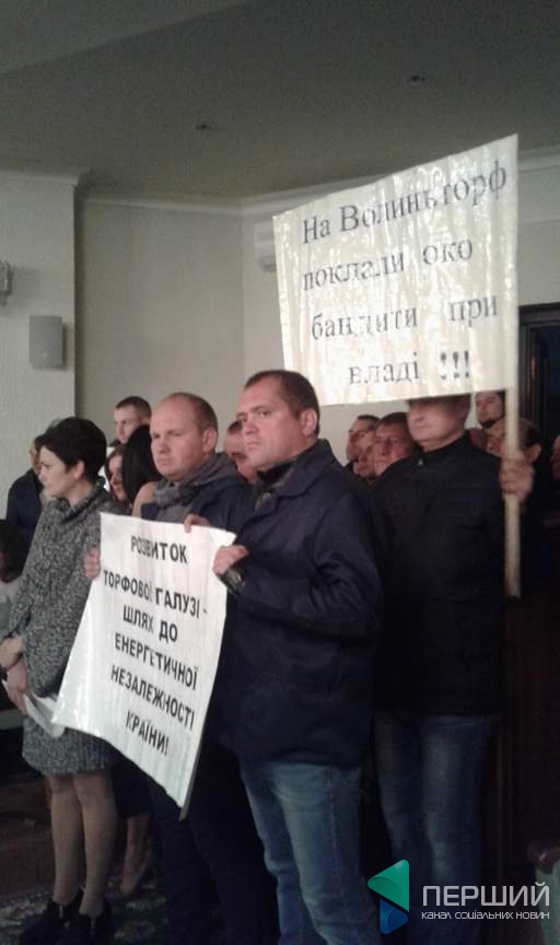 Станом на 10:10 частині працівників «Волиньторфу» вдалося зайти до сесійної зали.