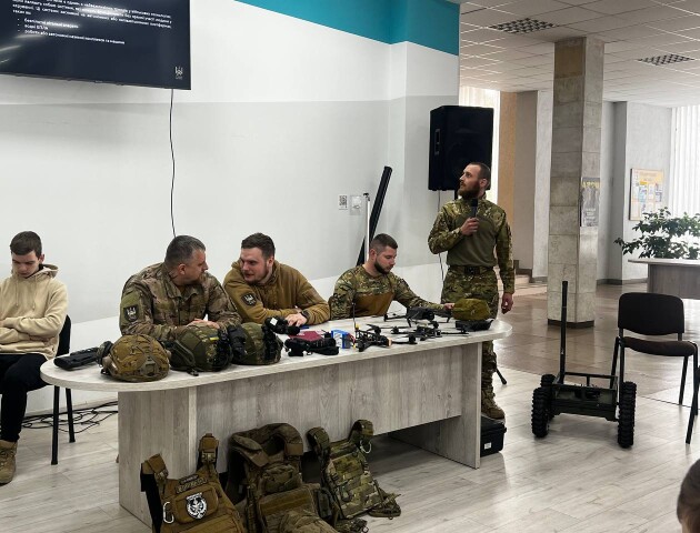 Захисники відповіли на чисельні запитання студентів і продемонстрували мінівиставку військової техніки та спорядження.