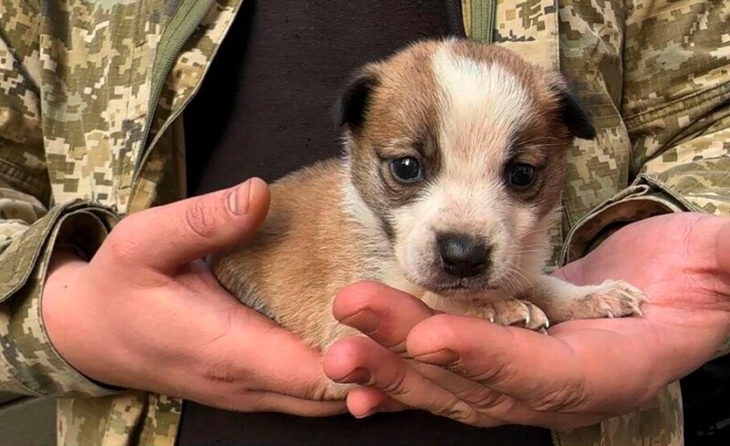 Прикордонник врятував цуценя і забрав його додому із зони бойових дій.
