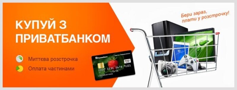 Щоб придбати необхідну техніку під виплату, достатньо мати з собою лише банківську картку. Сервіс «Оплата частинами» доступний власникам пластикових карт ПриватБанку.