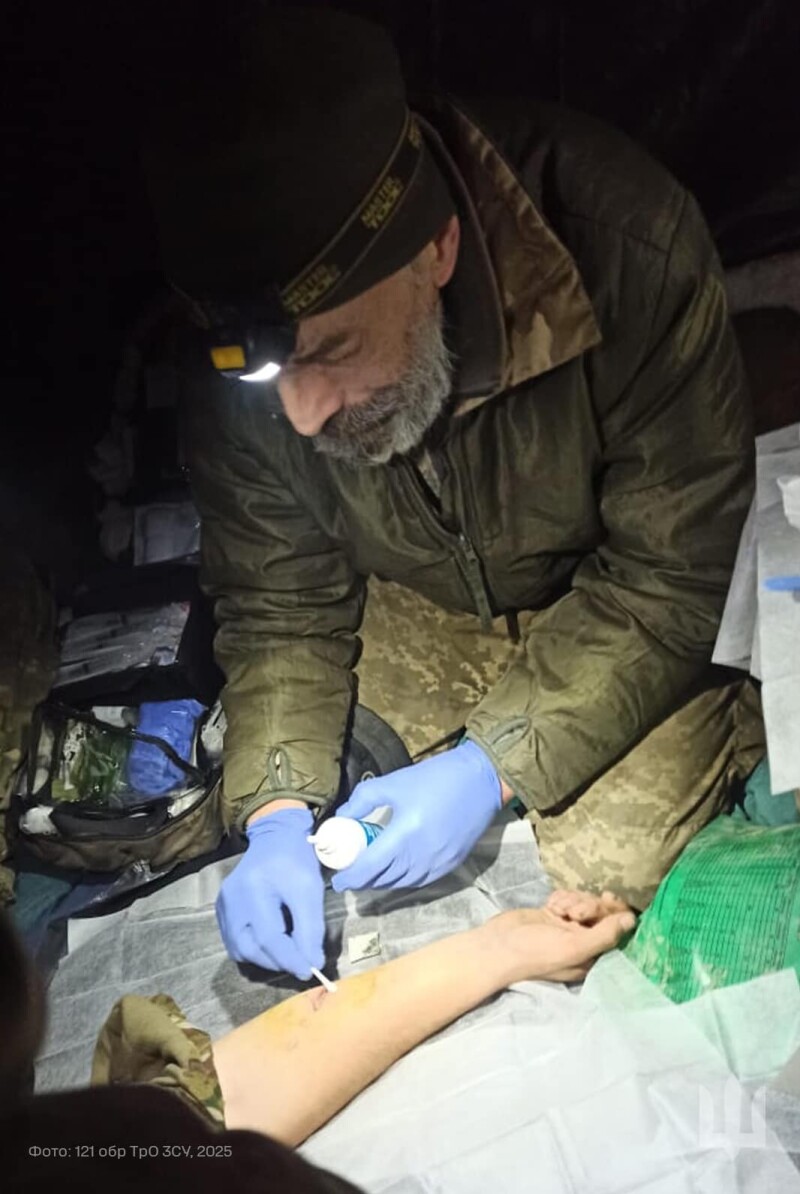 54-річний бойовий медик з позивним «Федор» служить у 121 окремій бригаді територіальної оборони ЗСУ з перших днів повномасштабного вторгнення. Чоловік проводить різні заняття, зокрема й по тактичній медицині для воїнів, які тільки прийшли на службу та до 22 лютого 2022 року не мали зв’язку з військом.