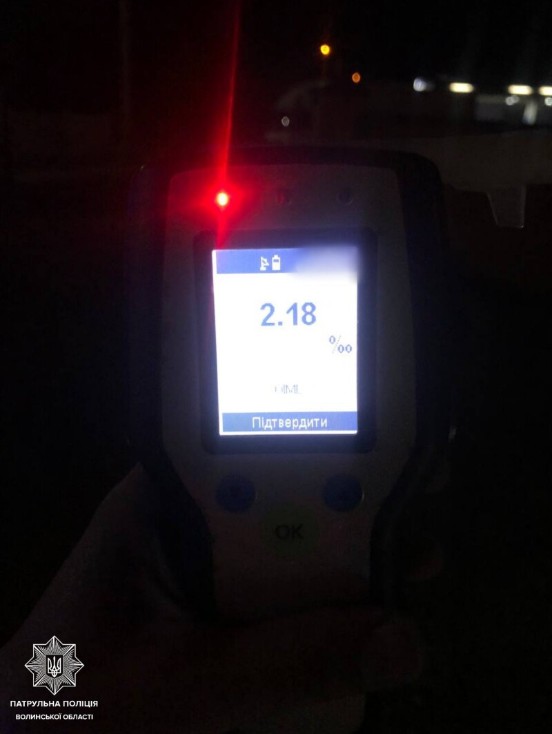 У водія поліцейські виявили явні ознаки алкогольного сп’яніння. Йому запропонували пройти огляд на місці події, й результат виявився позитивним. Прилад Drager показав 2,18 проміле, що перевищує максимально допустиму норму у майже 11 разів.