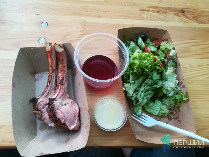 Враження. Винесли урок: треба звертати увагу на ступінь просмаження м’яса. Нас навіть перепитали: «Може вам ребра більше просмажити? Бо ж це теля, його взагалі сирим можна їсти!». Ми відмовилися. І наші думки розділилися. Бо комусь м’ясо видалося сирим. А інші (жіноча частина колективу) не пошкодували: м’ясо дійсно було ніжне, ароматне, особливе. І саме тому, що мало просмажене, практично – промариноване, нагріте і просякнуте димком. Салат ідеально підійшов до реберець.