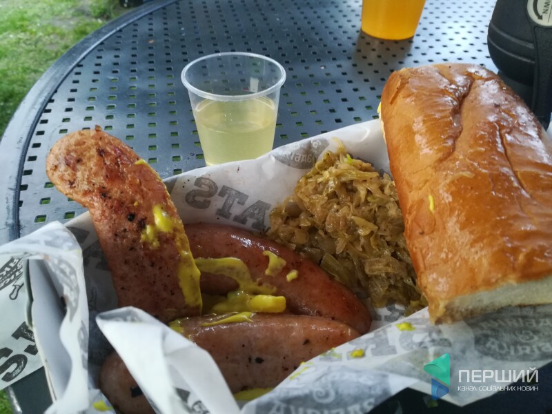 Враження. Ми не могли не спробувати нових сосисок Brats від «Забіяки». Тим більше, що тут, у фуд-траці «Забіяки» все готують комплексно – з різними додатками. соусами, гарнірами. Ми покуштували. Дійсно смачно, повноцінно, нічого зайвого. І смачнюча баварська капуста, і гірчичний реліш, і добротні три шматки ковбаски. Міцність і гірчинка обліпихової настоянки, яку продавали поряд, тільки підсилила повноцінність такого перекусу ;)