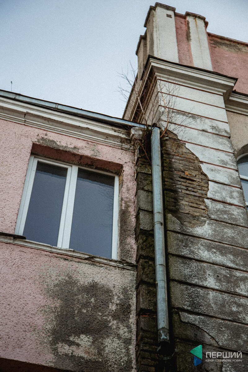Зараз, каже Котис, ситуація «просто плачевна». Через обірвані ринви вода тече просто на фасад. Через це стіни їсть грибок. Найменше, що треба зробити, облаштувати водовідведення.