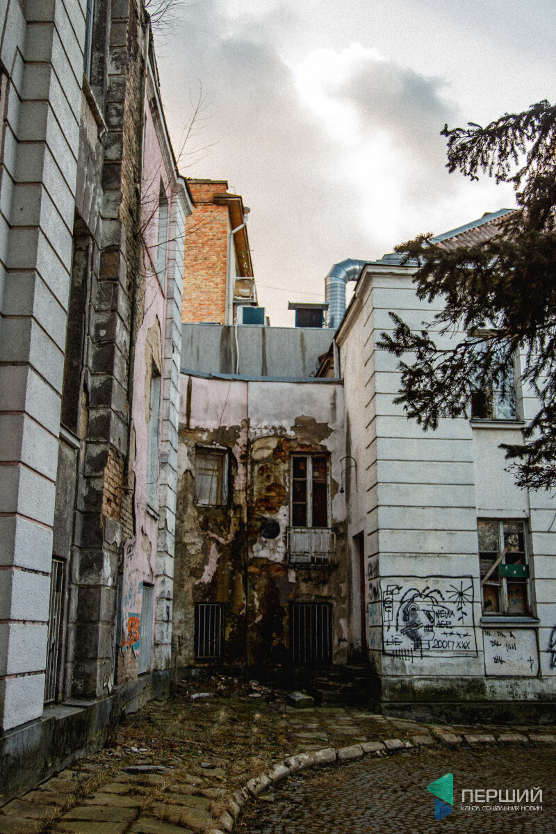 Цю споруду будували величною, помпезною і красивою. Вона занепадає з обдертими стінами, наживо вирваними трубами, дірками у стелі. Пережила війну. Але впасти ці стіни можуть не від війни. Гниє у самісінькому центрі Луцька. Міста, де часто говорять про цінність минулого.