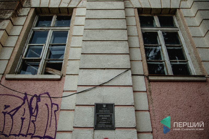 Нині Земельний банк охороняє сторож. На нашу появу в дворі він відреагував по-своєму: вибіг з комірчини у одному з бічних приміщень з металевою палицею в руках. Це єдине, каже, чоловік, чим він може іноді «переконати» молодь, яка збирається попід парканом у дворі пам’ятки і не цурається і смітити, і часто через вікна всередину пролізти, і нецензурщиною його, сивочолого, з ніг до голови обкласти.