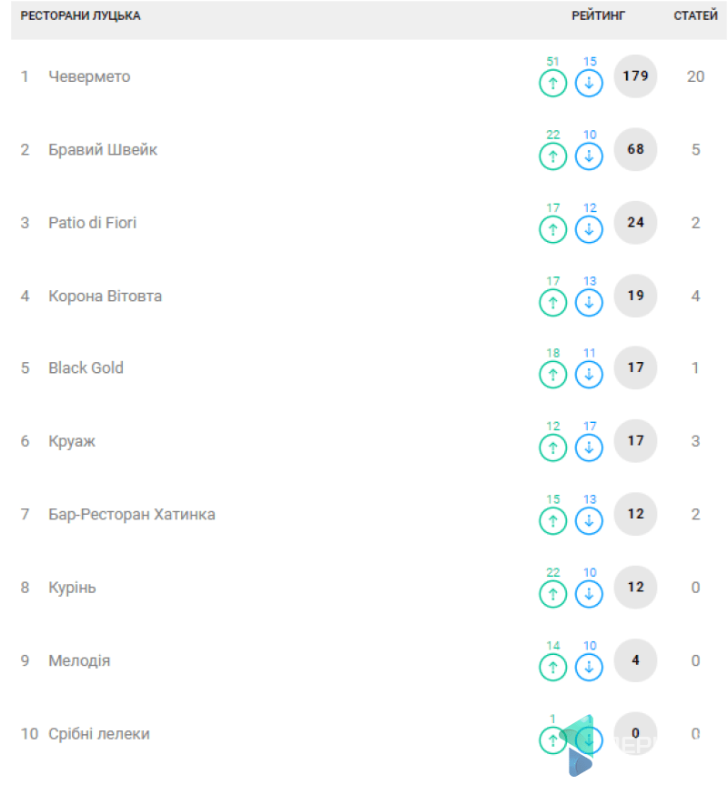 Рейтинг ресторанів Луцька