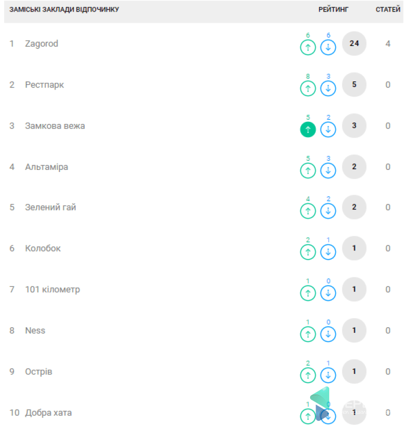 Абсолютним лідером рейтингу виявився комплекс відпочинку «Zagorod»