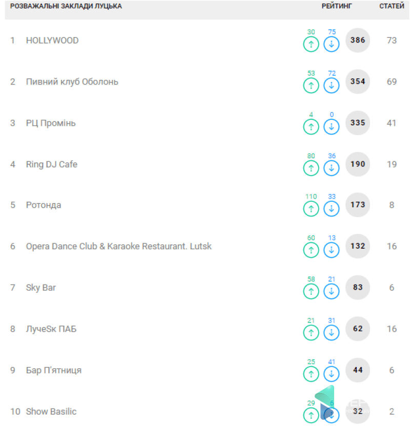 Рейтинг розважальних закладів