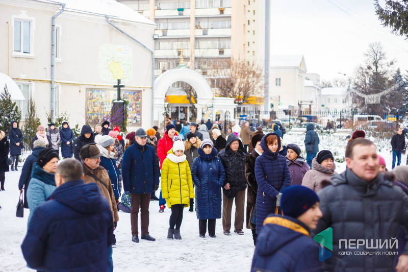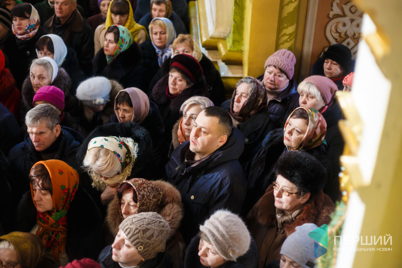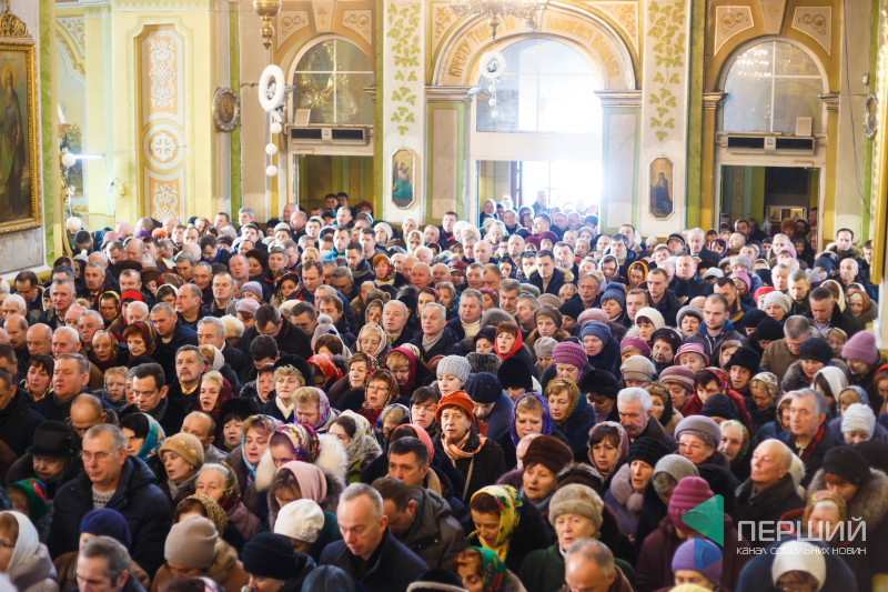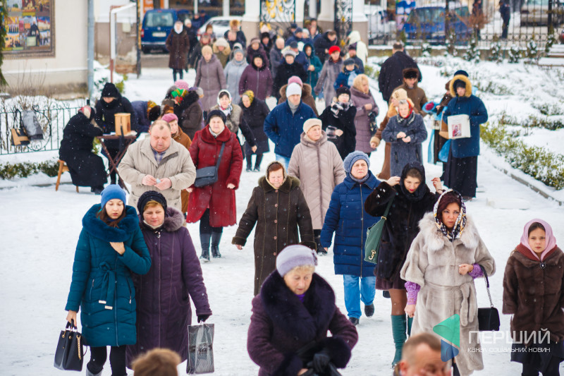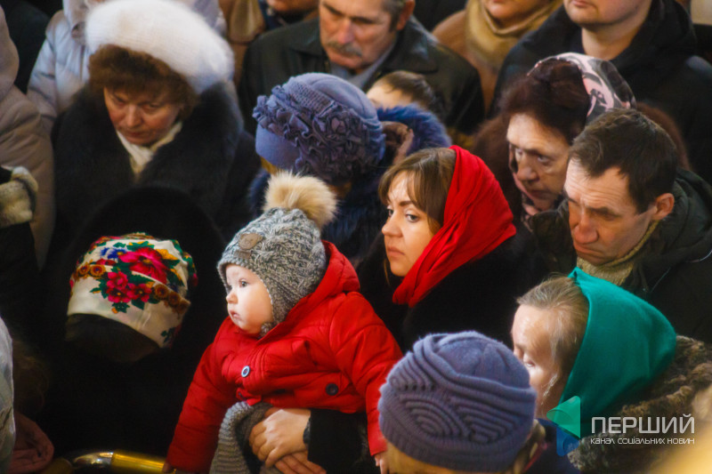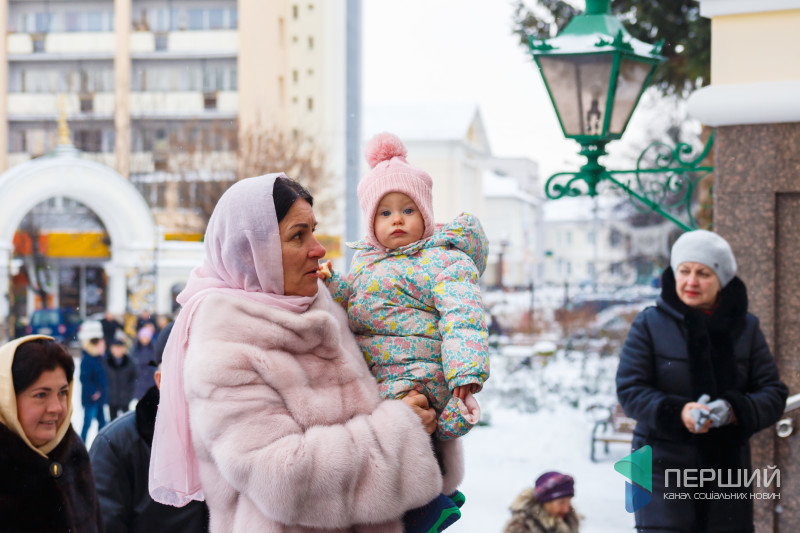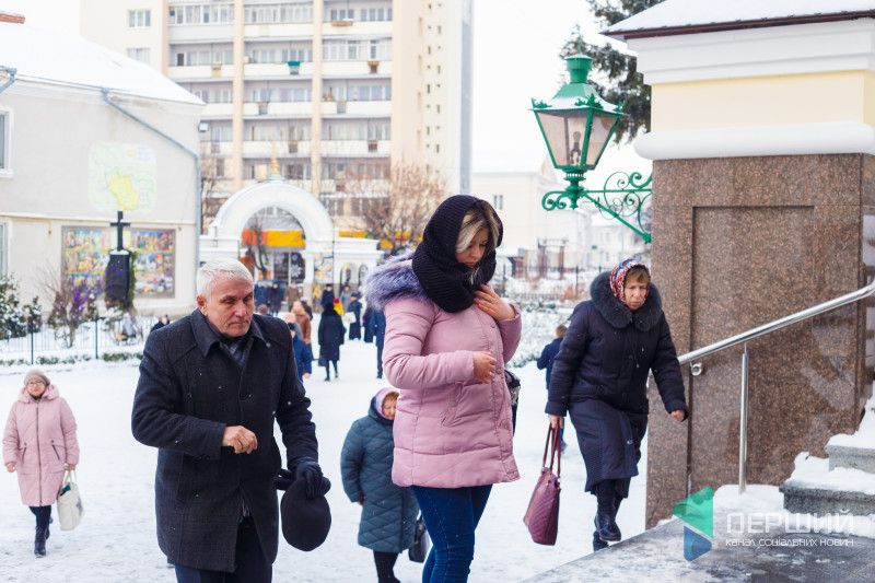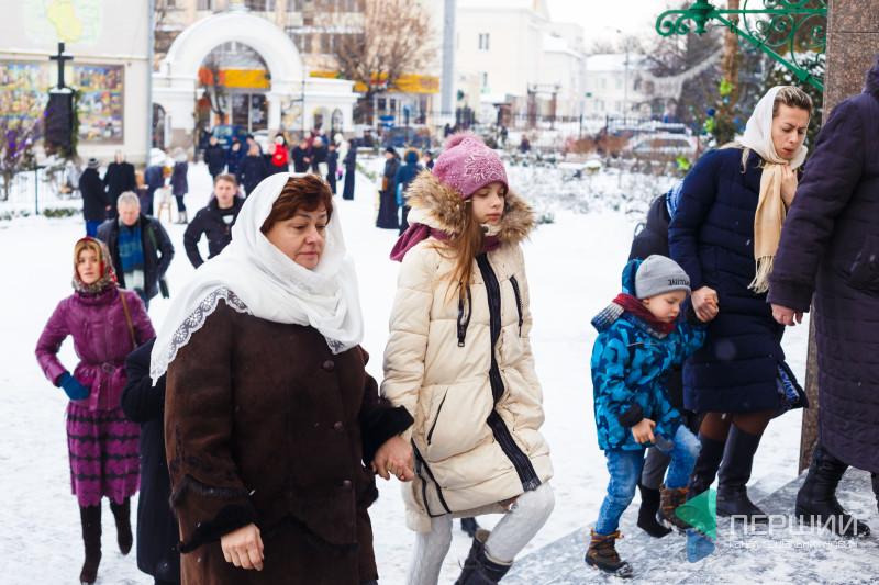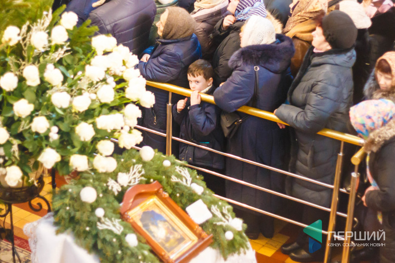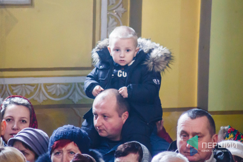 На свято до храму прийшли як дорослі, так і чимало дітей. Усередині верхнього храму - голці ніде впасти. Тож частина прихожан слухали молитви надворі, попри морозну погоду.