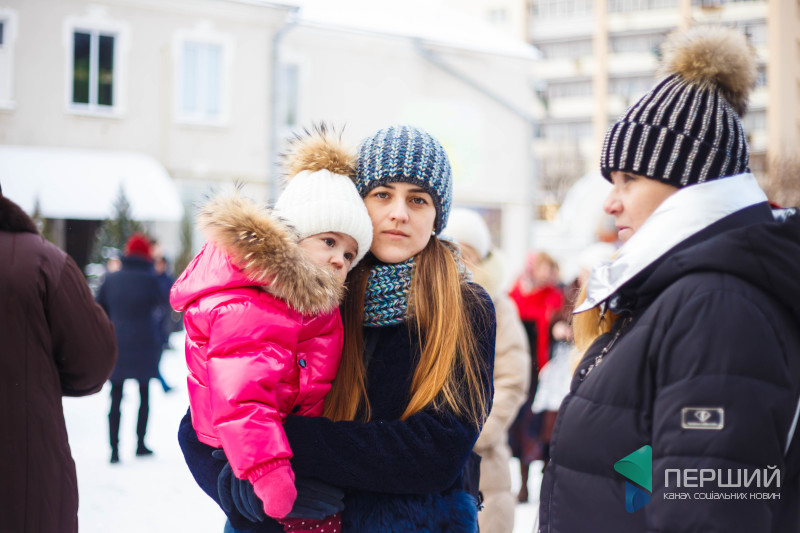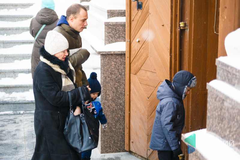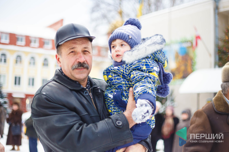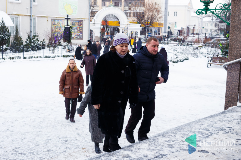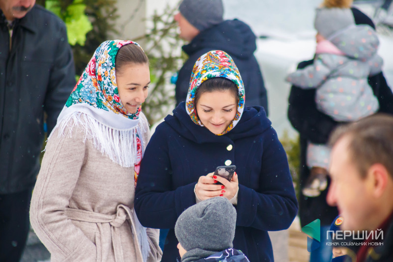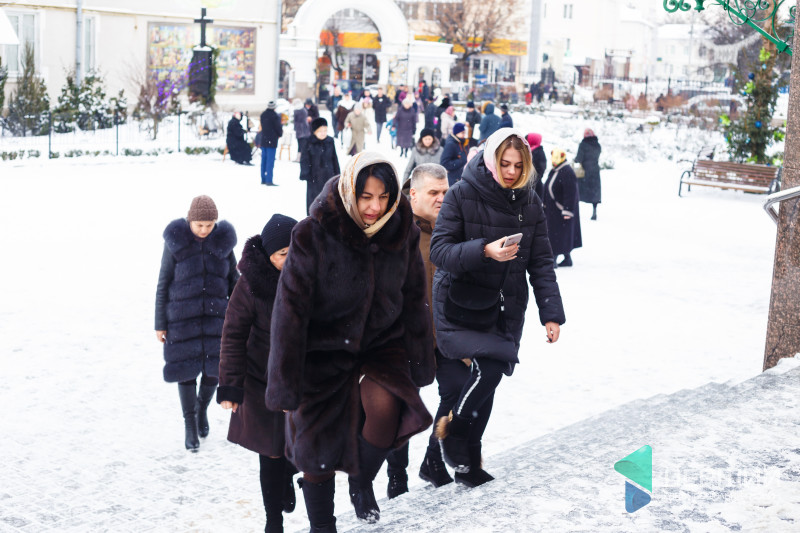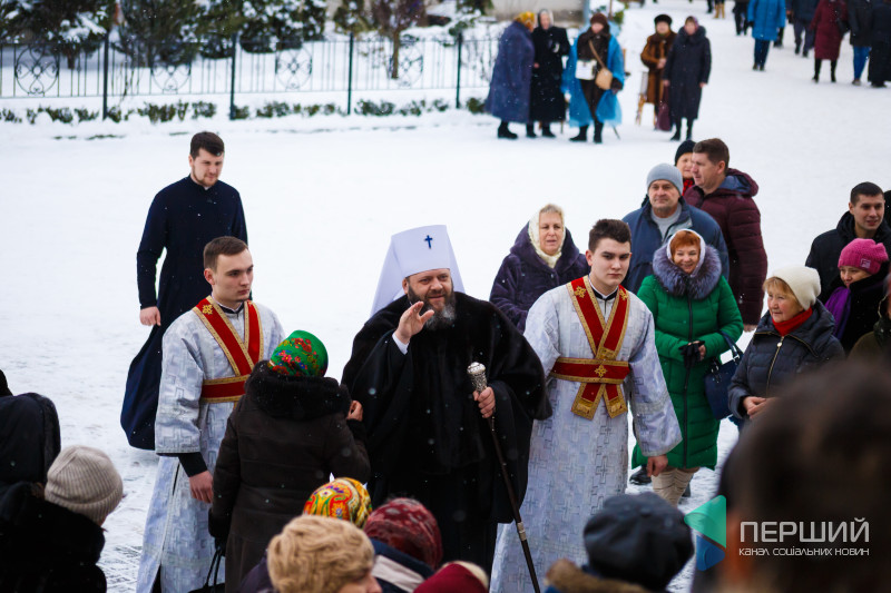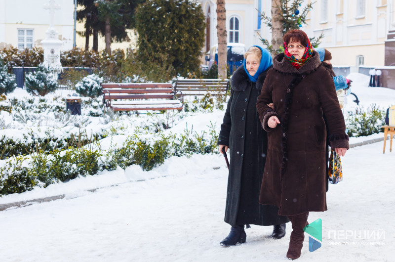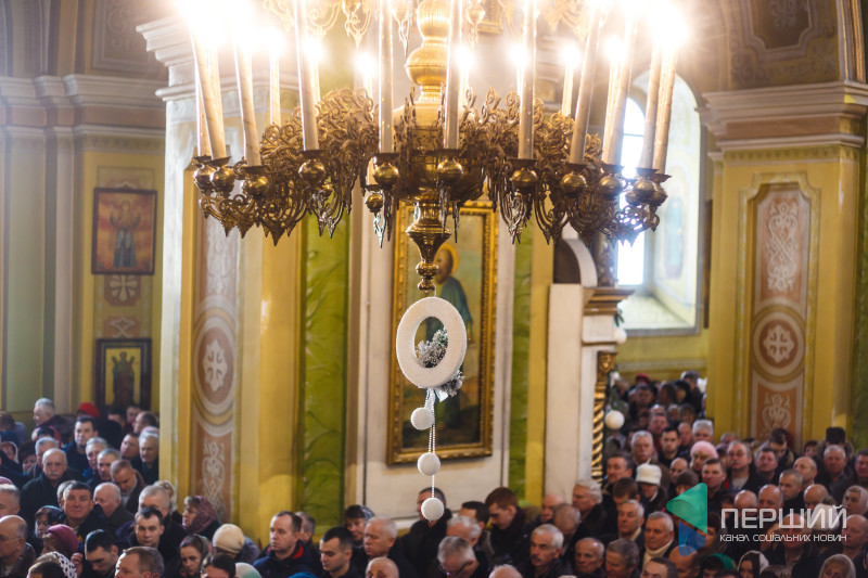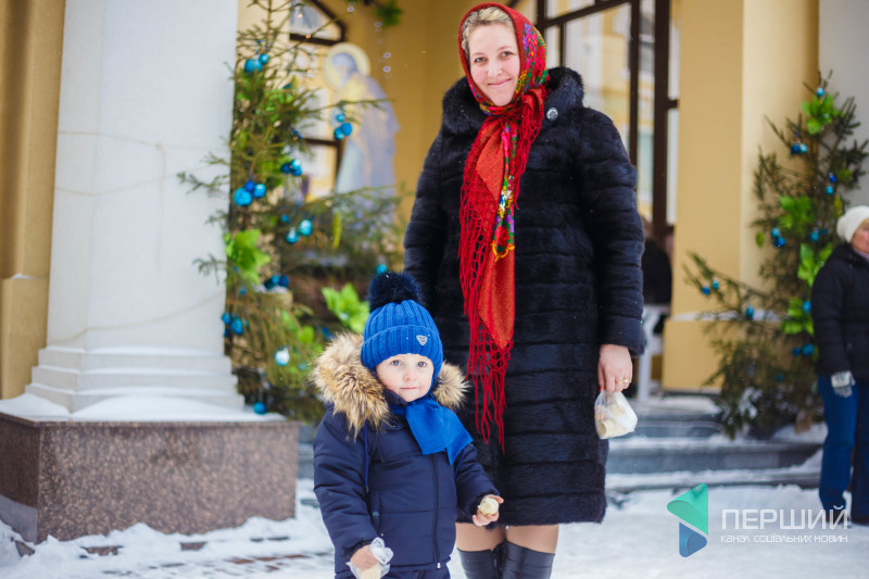 На свято до храму прийшли як дорослі, так і чимало дітей. Усередині верхнього храму - голці ніде впасти. Тож частина прихожан слухали молитви надворі, попри морозну погоду.