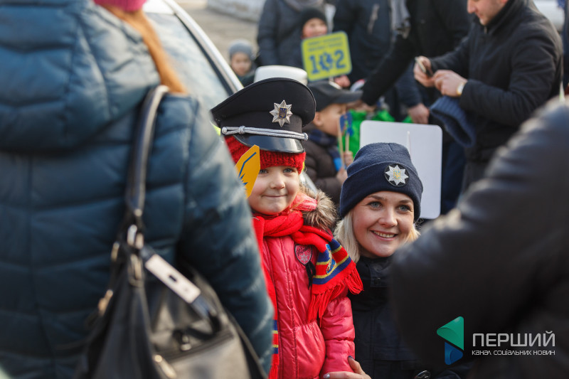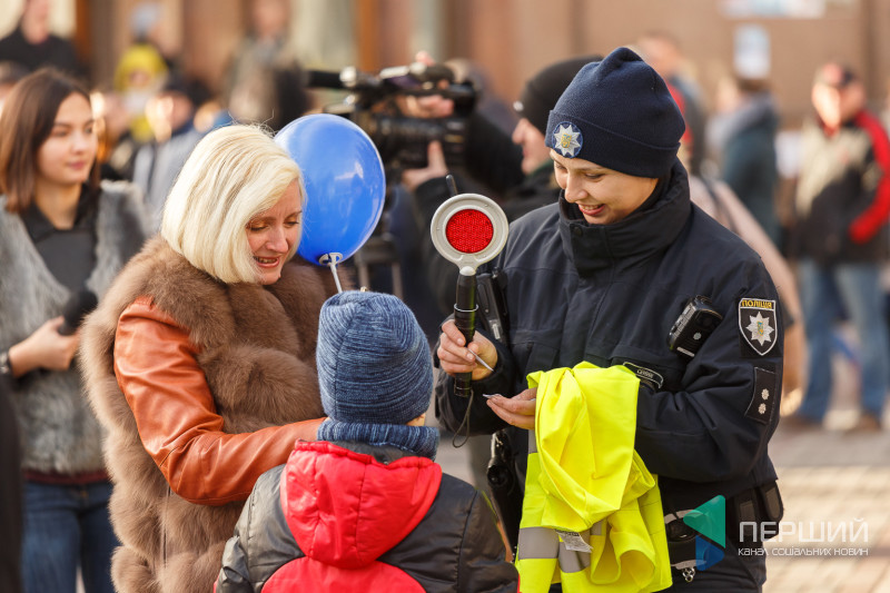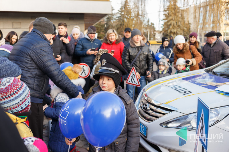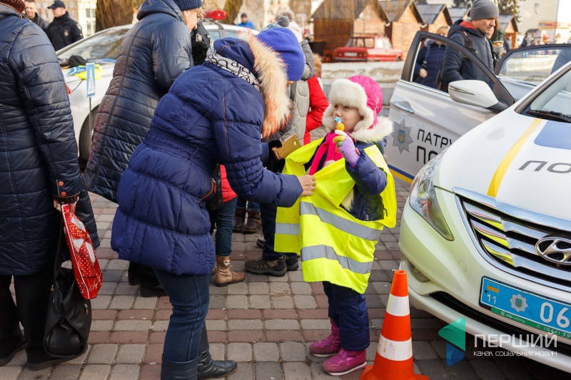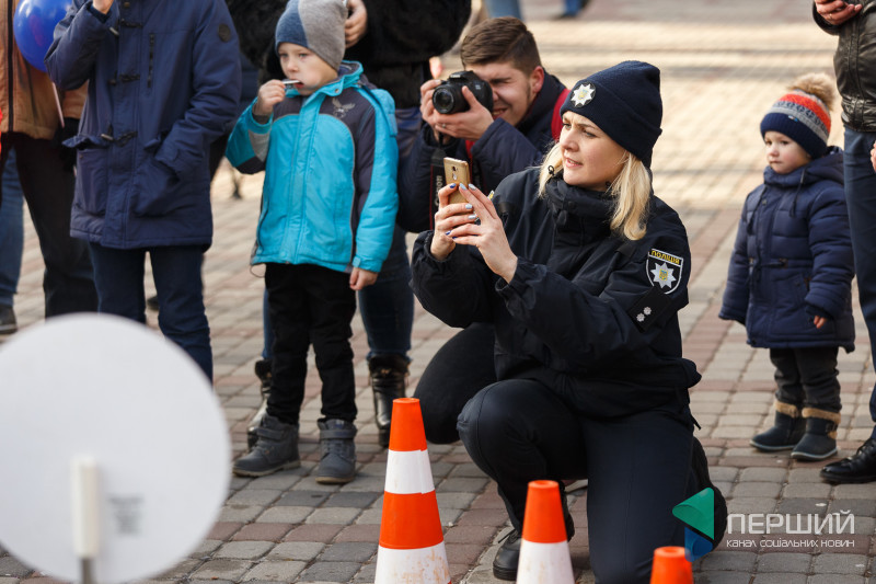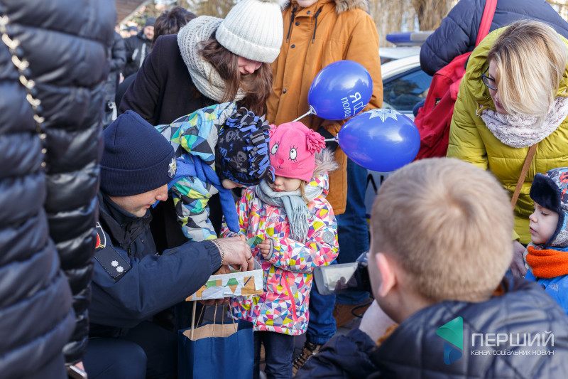 Всі охочі змогли поспілкуватися з патрульними, а для найменших відвідувачів влаштували вікторину на знання Правил дорожнього руху України. За правильні відповіді знавці ПДР отримували смаколики.