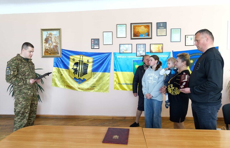 У приміщенні Ратнівської селищної ради відбулося вручення представниками військової частини Національної гвардії м. Луцька державної нагороди родині загиблого.