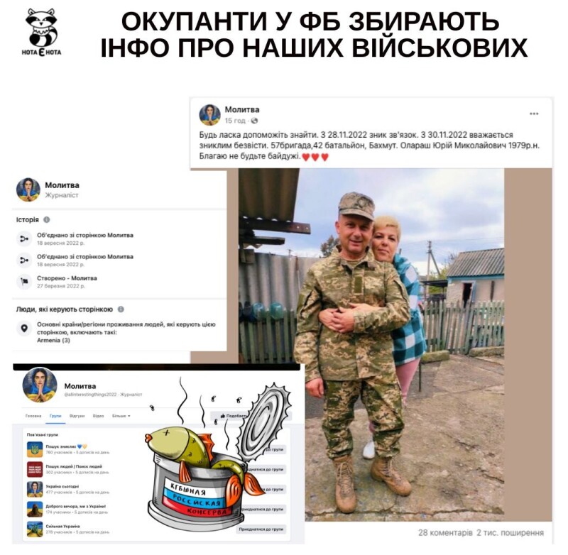 У фейсбуці російські окупанти створюють низку груп, в яких буцімто шукають зниклих українців, а насправді збирають про них інформацію.