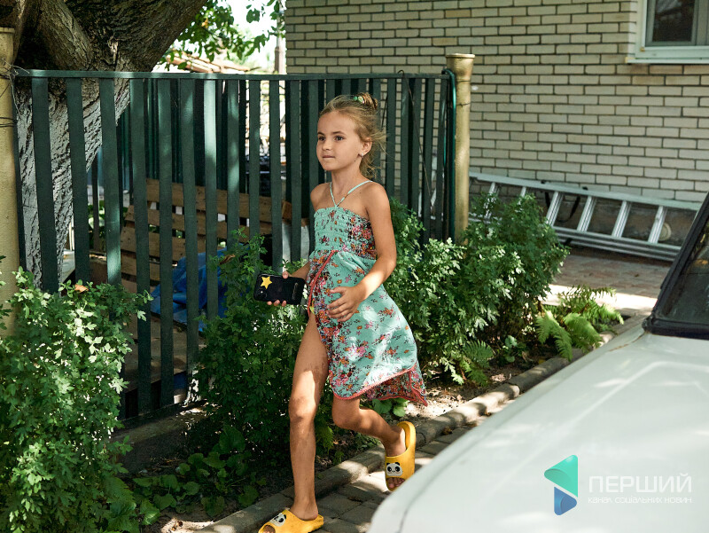 До діда біжать внуки. За ними виходить до нас і донька Володимира - Вікторія Петрович.