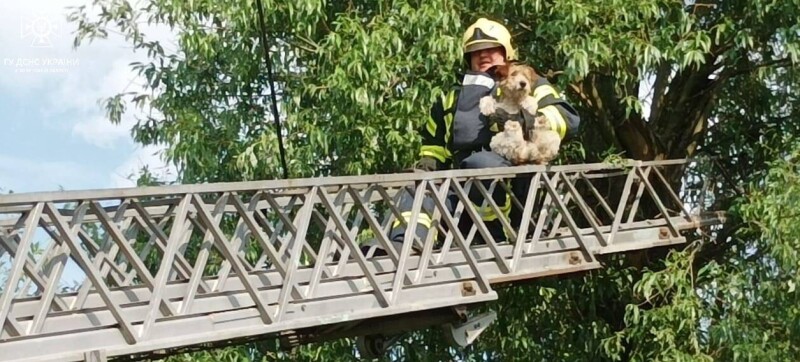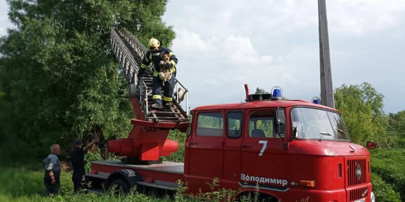 Цього ж дня в селі Острівок Володимирського району за допомогою автодрабини рятувальники дісталися до собаки, що з невідомих причин опинився на дереві, й спустили його додолу.