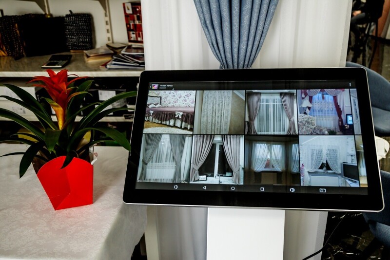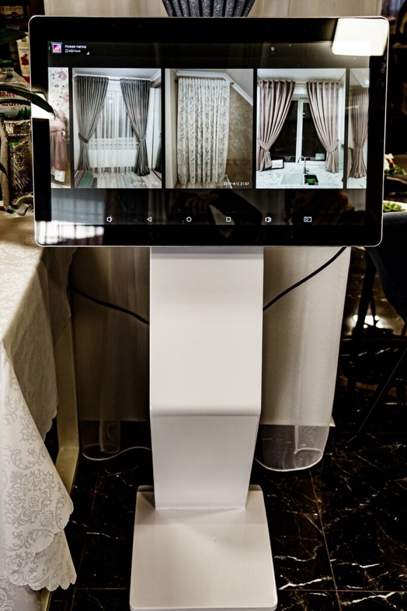Для зручності клієнтів у салоні встановили show box (демонстраційну плазму), на якій можна подивитися, як виглядають штори та тюль. Тут є каталог наших виробів. Також плазма дозволяє підібрати дизайн і тканину відповідно до вікна й інтер’єру замовника.