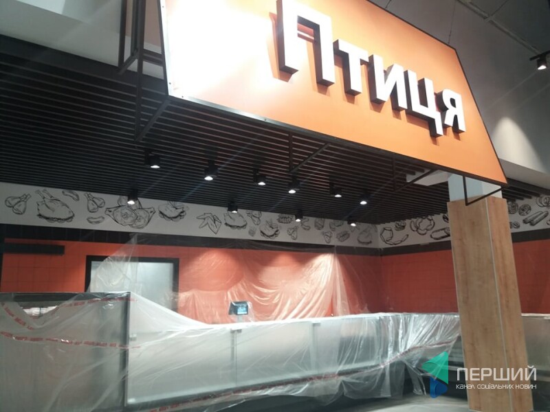 М'ясний відділ. Поки про існування цього відділу говорять лише вивіски, товар – на «старому» місці. Судячи із того, як розміщені холодильники і вивіски, птиця, м’ясо і риба будуть мати окремий «куточок».