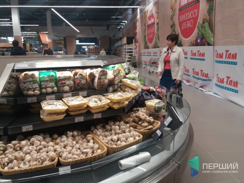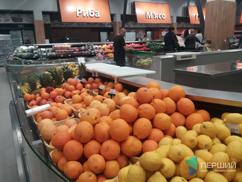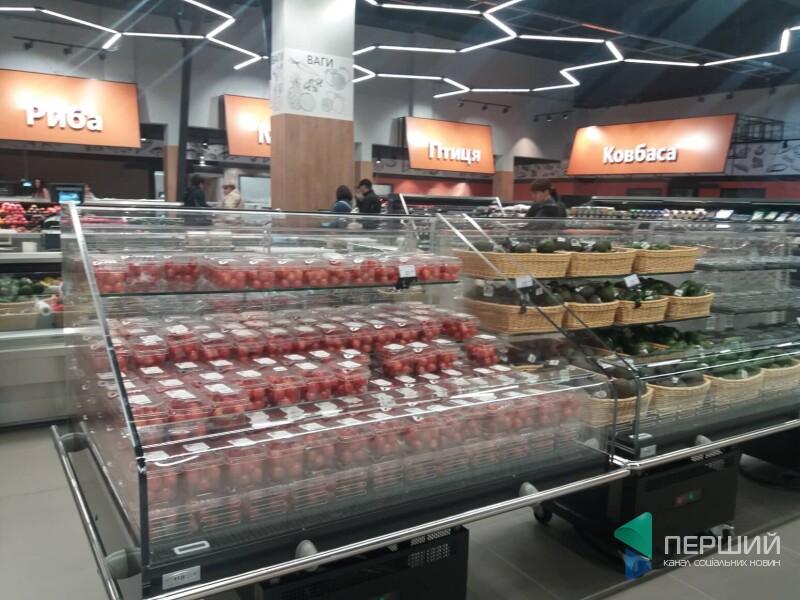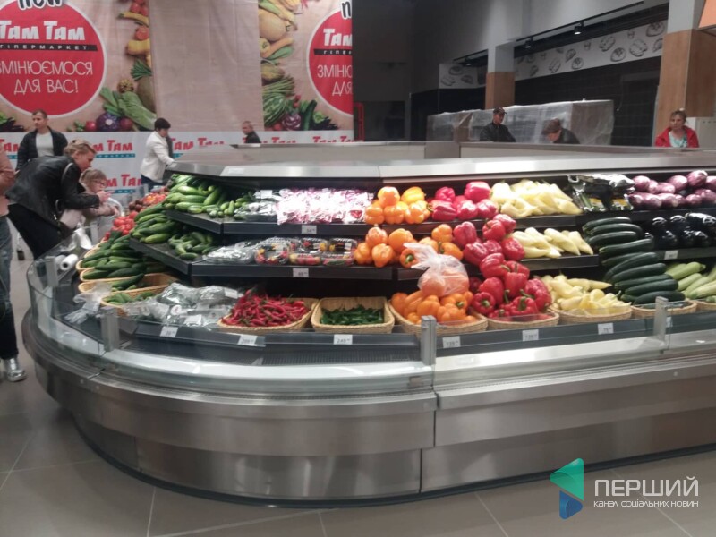 Асортимент помітно збільшився. Багато овочів і фруктів. По центру нової зали – два нові холодильники овальної форми для овочів і фруктів. Їх теж тепер дуже багато.