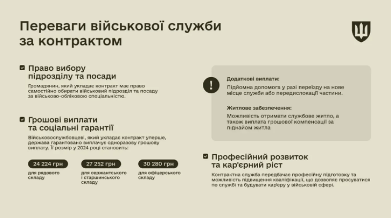 Військова служба в Збройних силах України за контрактом гарантує стабільний дохід, соціальну підтримку та право вибору місця служби, що є важливою альтернативою мобілізації під час воєнного стану.