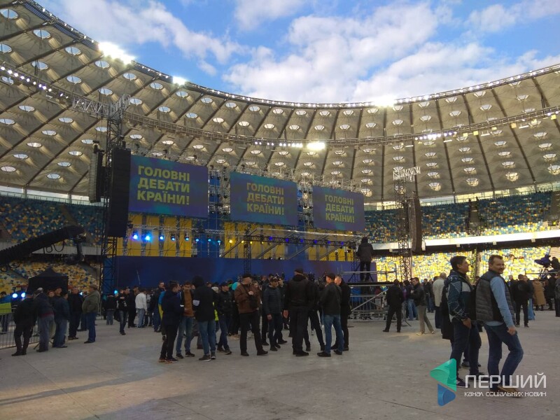На НСК «Олімпійський» встановили дві сцени у протилежних сторонах стадіону, на одній з них також розмістили дві трибуни для дебатів.