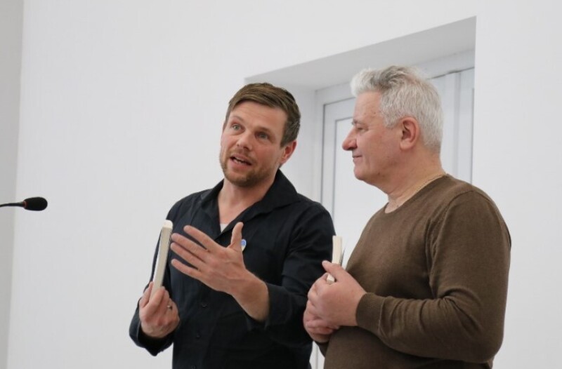 «У березні 2022 я хотів поїхати до Києва, але зміг потрапити лише до Львова та Тернополя. Тоді я був шокований, адже майже на кожному перехресті стояли блокпости, відбувалася перевірка документів і повертаючись до Німеччини, я не знав, чи взагалі зможу приїхати сюди ще, чи збережеться країна. Сьогодні я гордий і щасливий тим, що українське суспільство не тільки руками воїнів на фронті, але й руками цивільного населення, зробили все можливе і повернули життя у державу. І сьогодні є світло і є тепло, і у цій затишній залі чи можемо зустрічатися і обговорювати книги», - зауважує Штеффен.