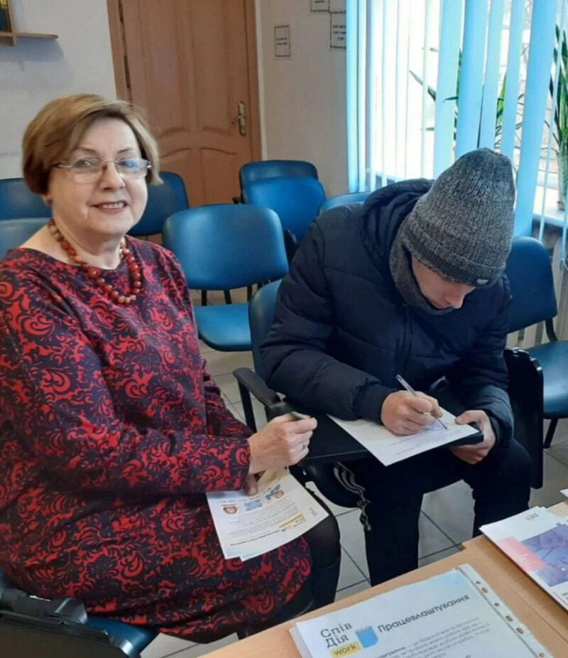 Шукачі роботи мають можливість пройти курси, отримати сертифікат державного зразка безкоштовно. Це і англійська мова, і польська, і державна українська мова, бухгалтерія, менеджмент, IT-професії, і т.д. У нас також є курс «Як знайти роботу в умовах війни». Для цього є окремий фахівець в проекті і він працює з такими запитами, підказує, радить, виясняє і направляє на курси. Є люди, які вже закінчили курси і знайшли роботу. Багато людей працює на фрілансі.