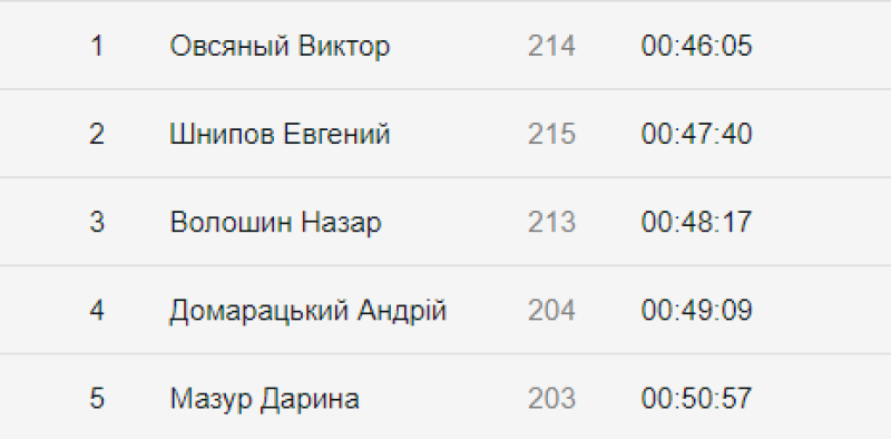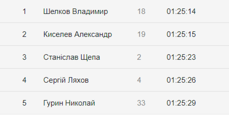 Результати марафону за Кубок України з перегонів на лижеролерах на дистанції 42 км.