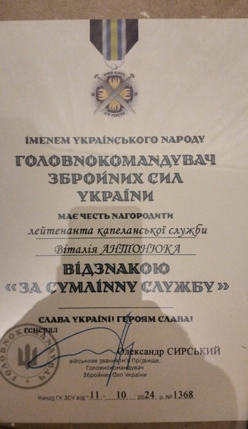 Почесним нагрудним знаком «За сумлінну службу» нагороджено військових священників протоієреїв Віталія Антонюка й Олександра Вронського.