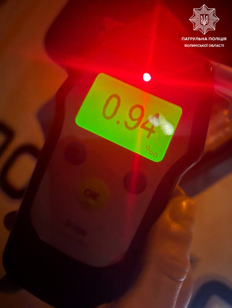 Патрульні виявили у чоловіка ознаки алкогольного сп’яніння. Йому запропонували пройти огляд за допомогою приладу Драгер, і алкотестер показав результат 0,94 проміле.