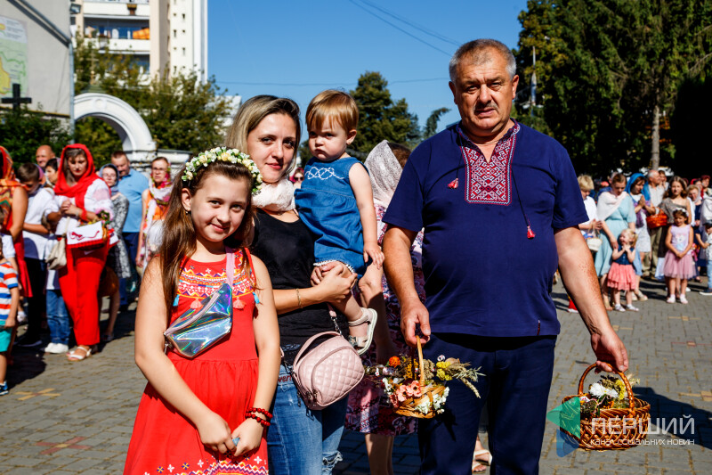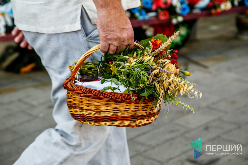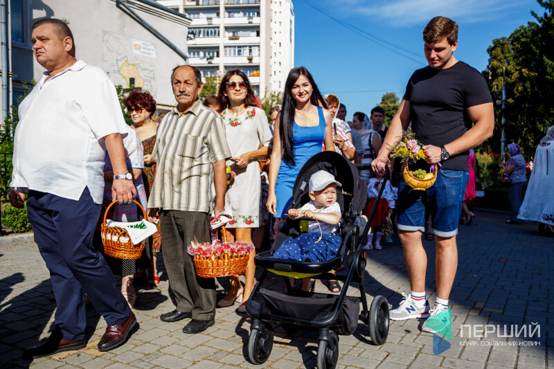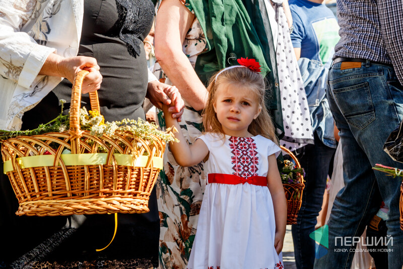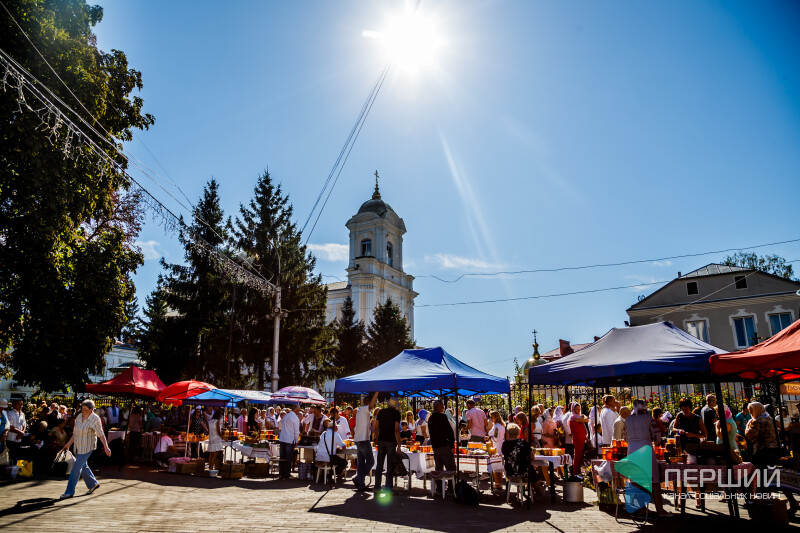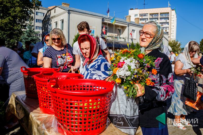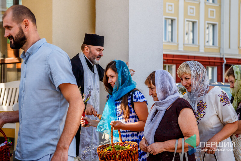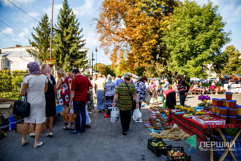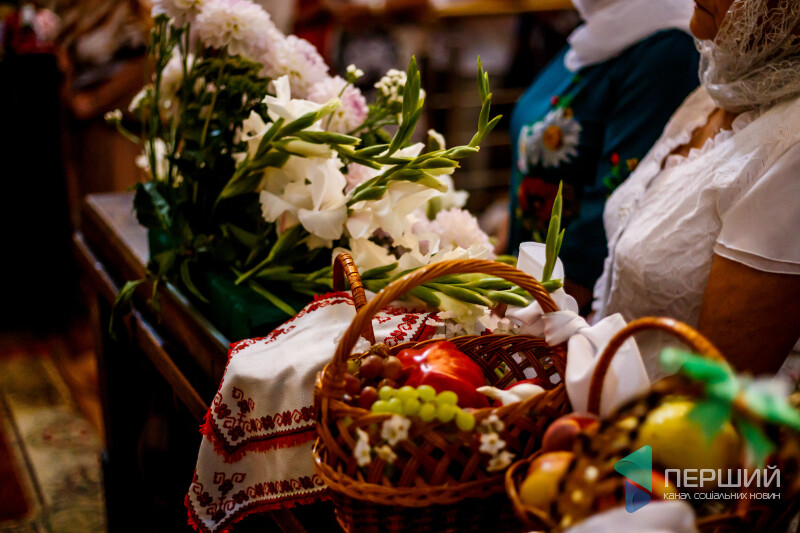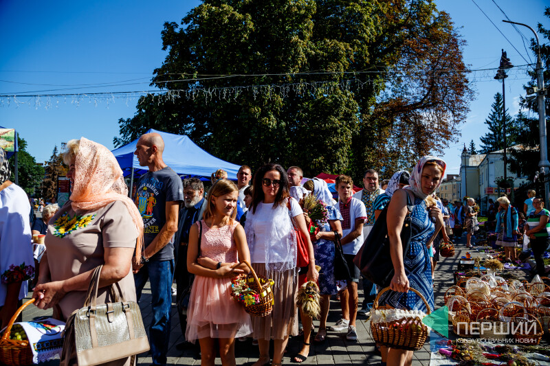 Попри те, що освячення кошиків тривало кілька годин поспіль, черга до собору розтягнулась на десятки метрів. Лучани одягнулись у вишиванки і несли до храму кілограми фруктів та меду. Традиційне начиння – яблука, квіти, вінки, та й самі корзини, можна було купити просто на Театральному майдані. Тут розгорнувся великий ярмарок.